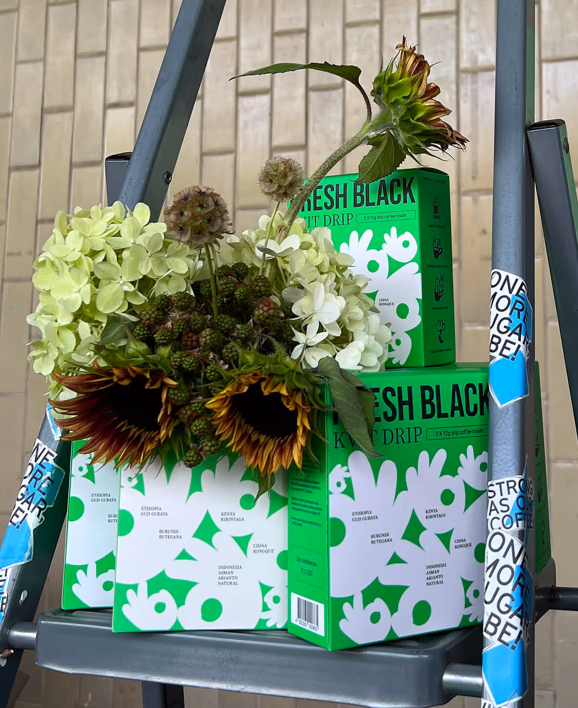 Several innovative concepts were proposed, among which the "Kvit Drip" ( Kvitka - Flower in Ukrainian) idea was chosen for realization. Given Fresh Black's status as a specialty coffee brand boasting unique coffee varieties and flavors, we decided to take a bold step by crafting the most floral-infused drip coffee the world had seen. This concept revolved around combining 5 distinct coffee blends, each with floral flavor profiles, into a single package, accompanied by an extraordinary addition – a blooming seed card.